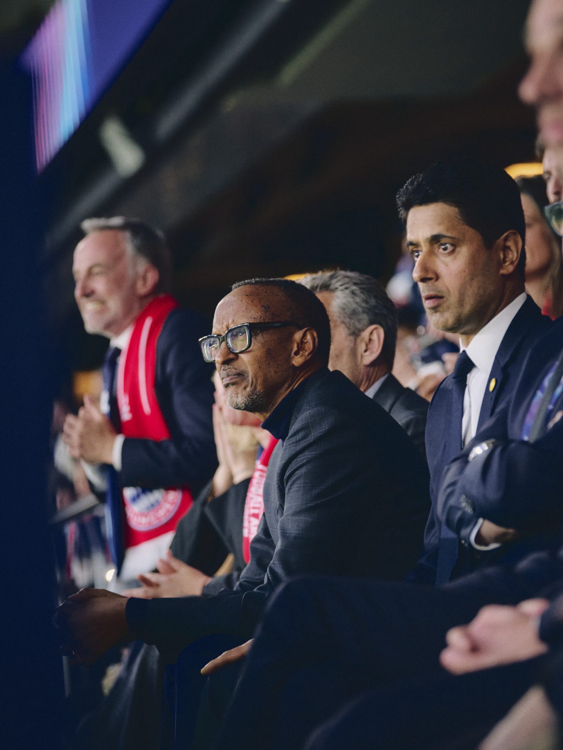 Perezida Paul Kagame yakurikiye umukino ubanza wa ½ cya UEFA Champions League, wahuje Paris Saint-Germain na Bayern Munchen, amakipe ari muyo u Rwanda rukorana nayo muri Visit Rwanda.