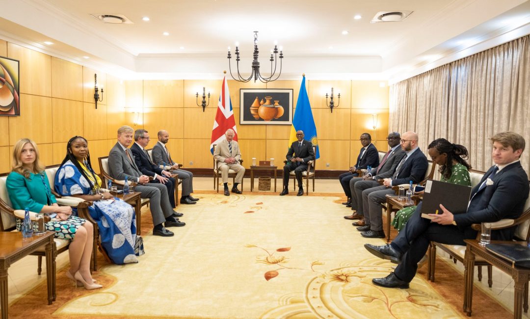 Perezida wa Repubulika y’u Rwanda, Paul Kagame na Madamu Jeannette Kagame, bakiriye muri Village Urugwiro Igikomangoma cya Wales Charles Philip, gihagarariye Umwamikazi w’u Bwongereza mu nama y’Abakuru b’Ibihugu na za Guverinoma bo mu muryango w’Ibihugu bikoresha Ururimi rw’Icyongereza, CHOGM, arikumwe na Madamu we Camilla, baganira ku mubano ibihugu byombi bifitanye.