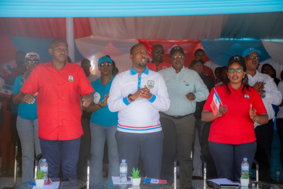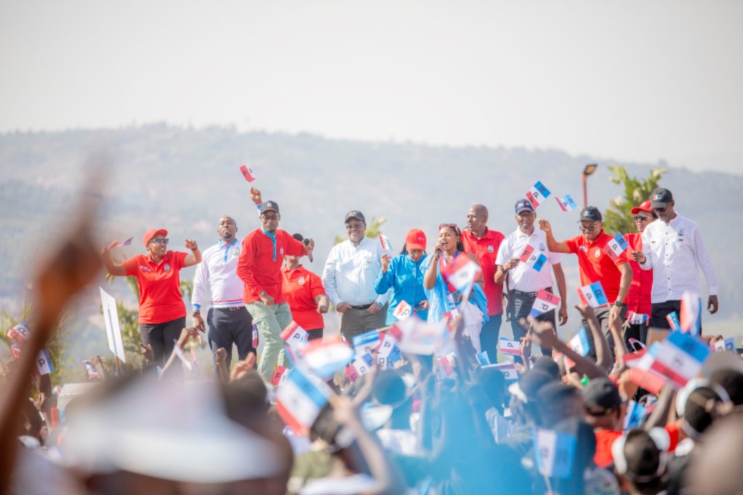 An estimated over 10,000 supporters of the RPF gathered at the campaign site at Gitwaza stadium dressed in party colors, red, white and blue, sang patriotic songs as they waved party flags.