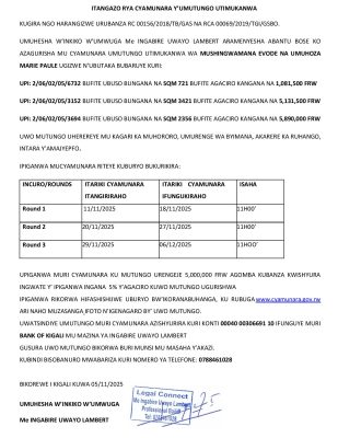 Ruhango: Cyamunara y’imitungo itimukanwa ibaruye kuri UPI: 2/06/02/05/6732; UPI: 2/06/02/05/3152 na UPI: 2/06/02/05/3152; mu murenge wa Byimana, Akagari ka Muhororo