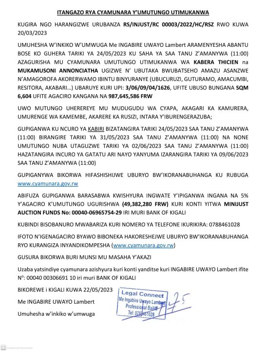 Rusizi: Cyamunara y’ubutaka bwubatse amagorofa n’inzu zisanzwe z’ubucuruzi bubaruye kuri UPI: 3/06/09/04/1626; mu murenge wa Kamembe, Akagari ka Kamurera, Umudugudu wa Cyapa