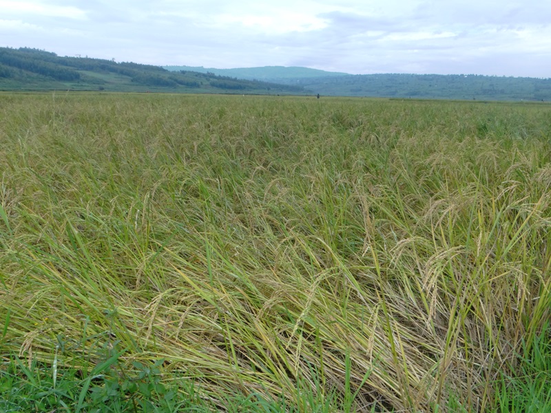 Umuceri wo mu bwoko burebure iyo umaze kwera uragwa kubera uburemere (Ifoto/Panorama)