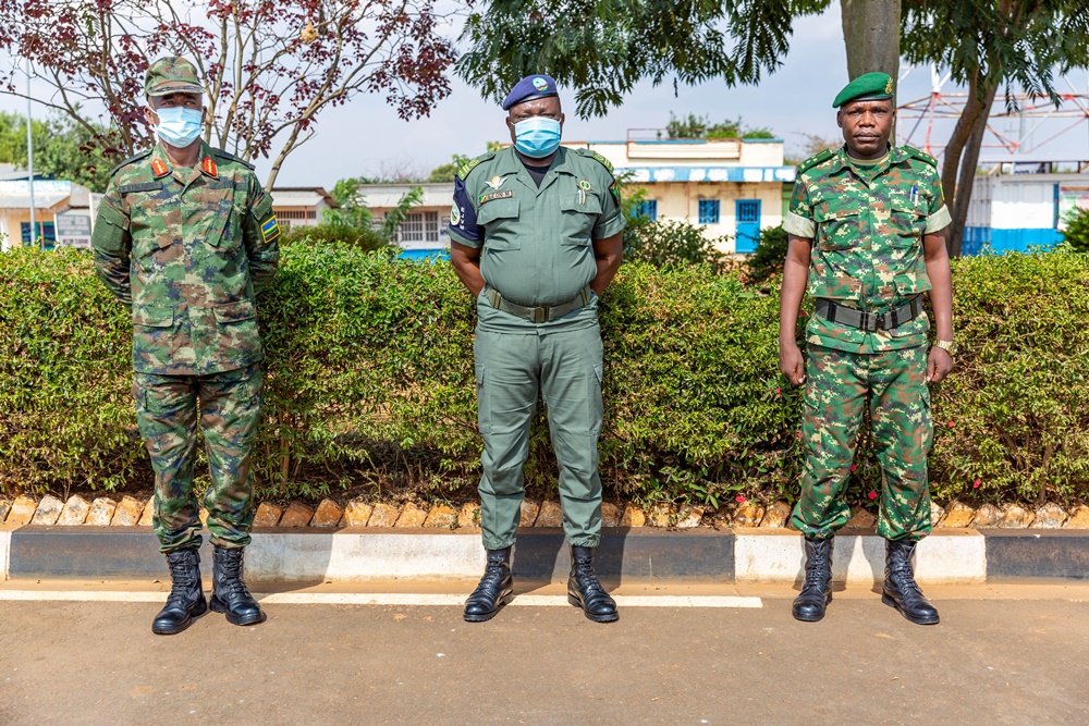 Uhereye ibumoso ni Brig. Gen. Vincent Nyakarundi ukuriye iperereza mu Gisirikare cy’u Rwanda; Col Leon Mahoungou uyobora EJVM na Col Erneste Musaba ukuriye iperereza mu gisirikare cy’u Burundi.
