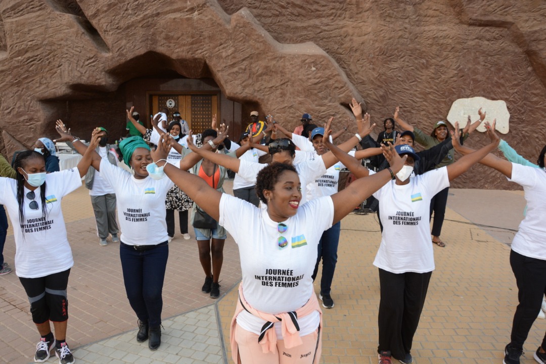 Kwizihiza Umunsi Mpuzamahanga w’Abagore byabereye kuri “Monument de la Renaissance Africaine” i Dakar mu murwa mukuru wa Sénégal ahari ikimenyetso kigaragaza ubwigenge bwa Afurika, uko Afurika yavuye mu bukoroni no mu mwijima ikagana mu mucyo.