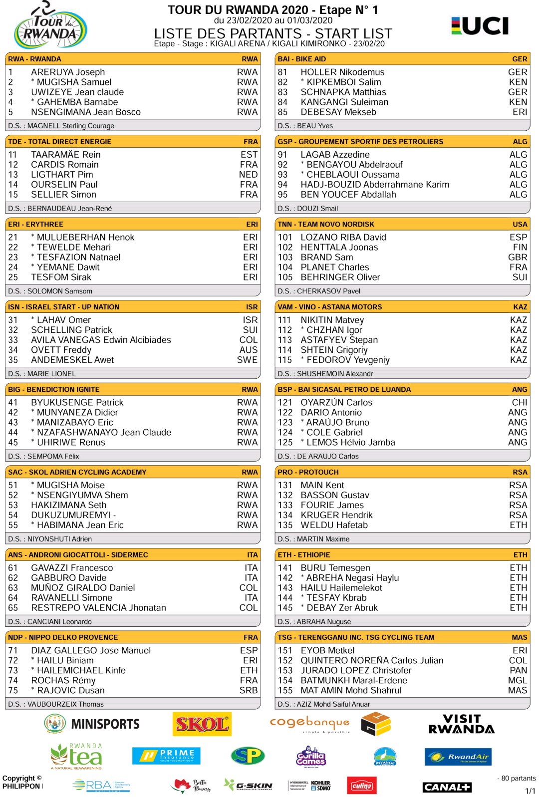 But Estonian Rein Taaramäe (Total-Direct Energie) departs as overall favourite for the victory after his second place behind Merhawi Kudus last year. Kazakh Yevgeniy Fedorov (Vino-Astana Motors), Chilean Carlos Oyarzun (BAI Sicasal) and also the young Ethiopian Mulu Kinfe Hailemicheal (3rd of the 2018 Tour du Rwanda) are other possible candidates for the overall victory.