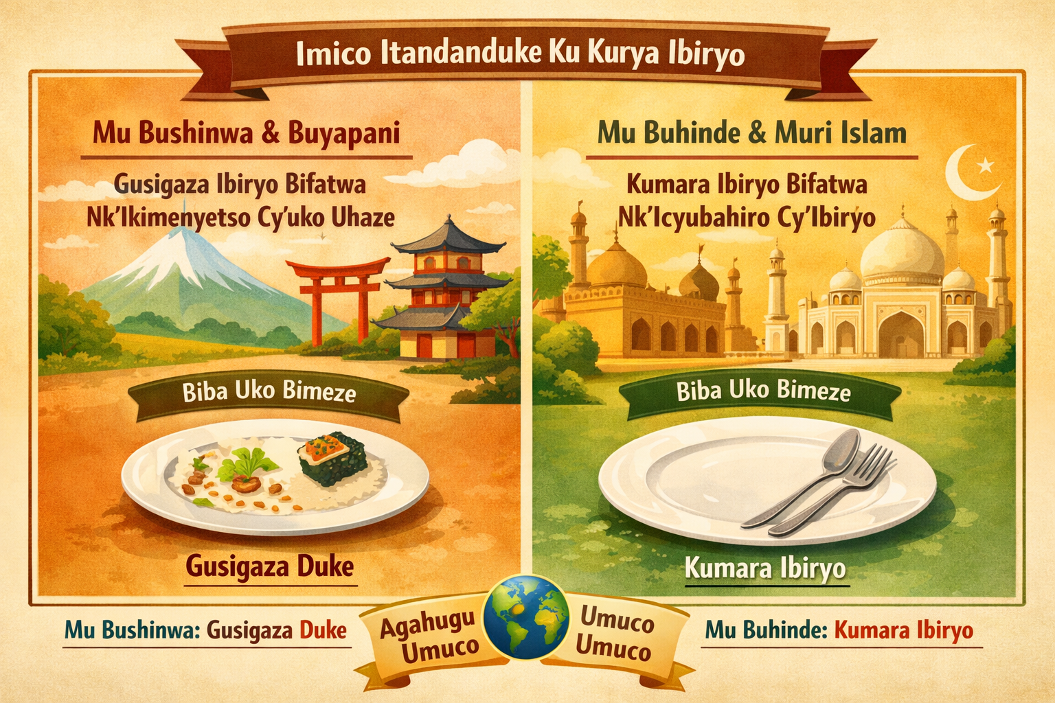 Ku Isi hose usanga abantu bafite imico itandukanye mu mibereho ya buri munsi, harimo n’uburyo bafata ibijyanye no kurya. Hari aho gusigaza ibiryo ku isahani bifatwa nk’ikintu gisanzwe, abandi bo bakabifata nk’icyaha cyangwa gusuzugura uwagutumiye. Kubera iyo mico itandukanye, Abanyarwanda bagahera ko bavuga ngo “agahugu umuco akandi umuco.”