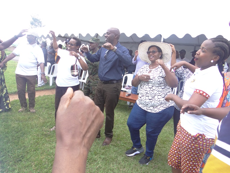 Nyuma y’umuganda, abawitabiriye bahuje urugwiro bacinya akadiho (Ifoto/Panorama)