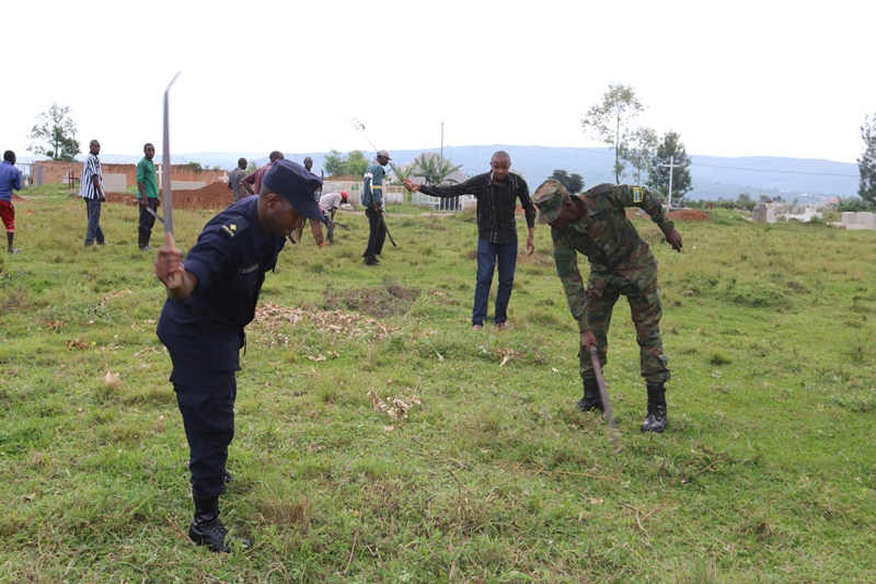 Abahagarariye ingabo na Polisi na bo bifatanyije mu muganda n’abanyagatsibo bakorera hanze y’akarere (Ifoto/Panorama)