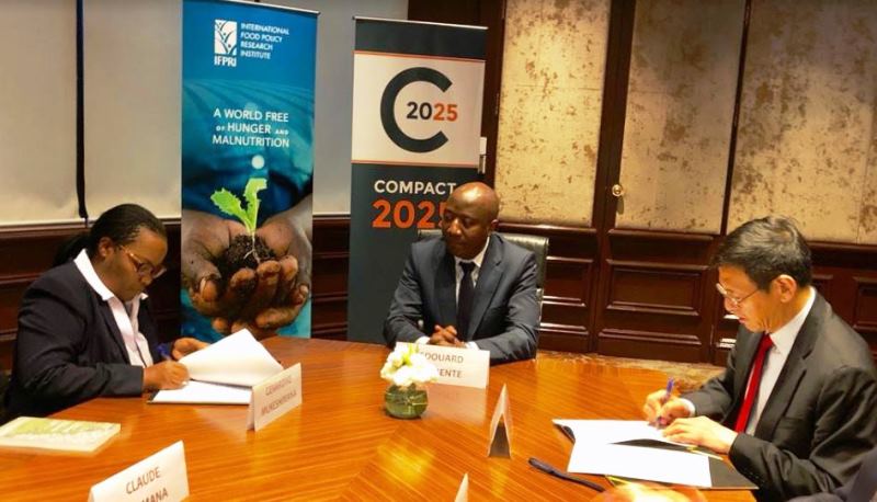 Minisitiri w’Intebe, Dr. Edouard Ngirente kandi yanakurikiranye umuhango wo gushyira umukono ku masezerano hagati ya Dr. Shenggen Fan, Umuyobozi Mukuru w’Ikigo Mpuzamahanga gishinzwe ubushakashatsi ku biribwa (IFPRI) na Minisitiri w’Ubuhinzi n’Ubworozi Dr. Mukeshimana Gérardine.
