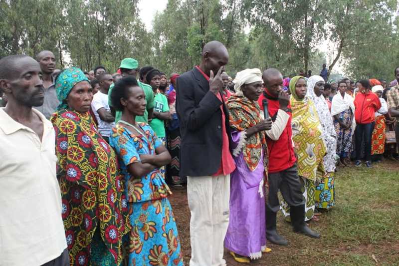 Abaturage bageza ibibazo byabo kuri Guverineri Mukulukye Fred n’abandi bayobozi babasuye mu nteko y’abaturage mu kagari ka Kinunga, Umurenge wa Remera, akarere ka Ngoma.