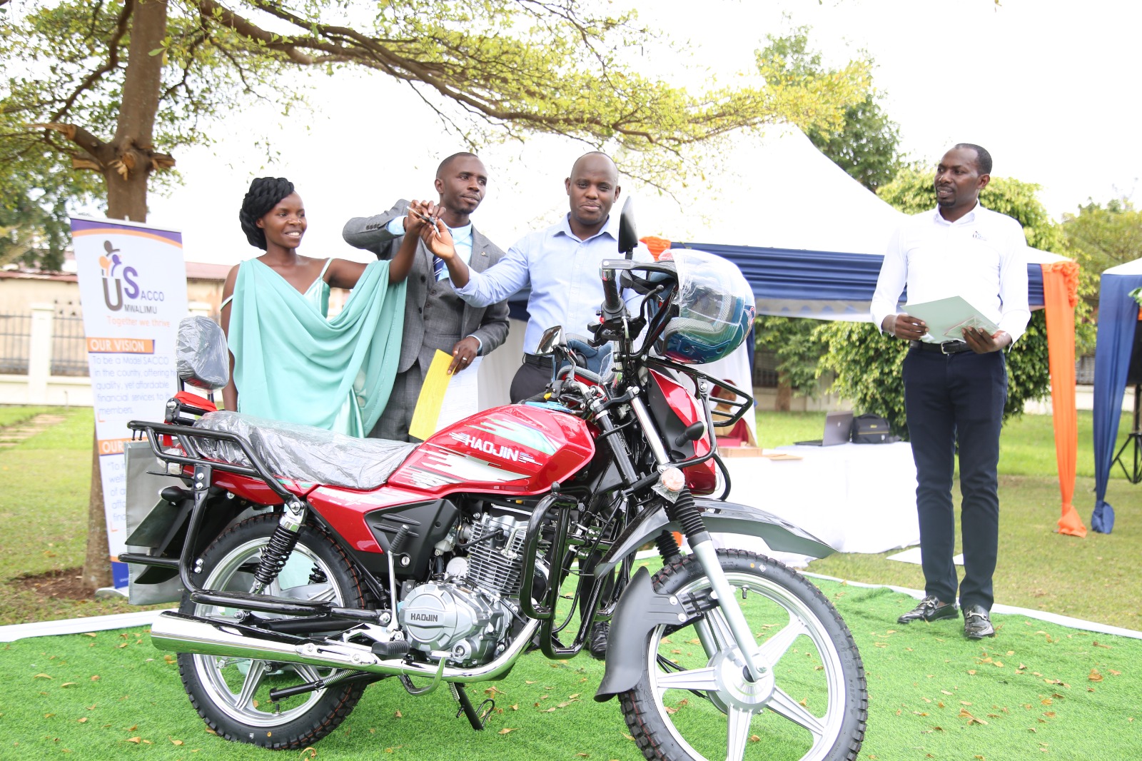 The rewards worth 43 million Rwandan Francs include trophies and in-kind prizes such as motorcycles, computers, etc. 5 motorcycles were given to best borrowers at provincial level, 63 laptops awarded to Best borrowers at District level, best savers and best performing tontines while 30 trophies were given to best performing schools in school fees deposit.