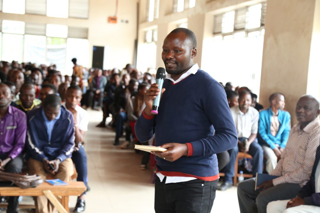 A member of Umwalimu SACCO in Nyabihu District gives an idea