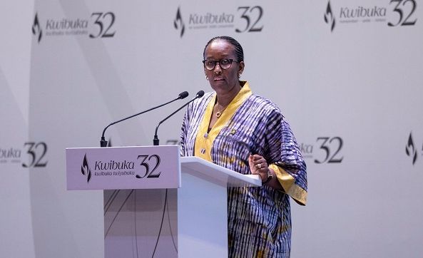 Madamu Jeannette Kagame, yasabye Abanyarwanda bose gukomeza guharanira iterambere ry’igihugu no gusigasira ibyo kimaze kugeraho, agaragaza ko Kwibuka bigomba kujyana no kwiyubaka.