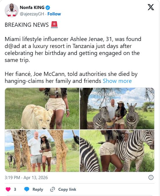 Urupfu rw’umunyamerikakazi w’icyamamare ku mbuga nkoranyambaga, Ashly Robinson, uzwi nka Ashlee Jenae, rukomeje guteza impaka n’amayobera menshi ku Isi, nyuma yo kwitaba Imana mu buryo butarasobanuka neza ari mu kiruhuko muri Zanzibar, muri Leta Yunze Ubumwe ya Tanzania.